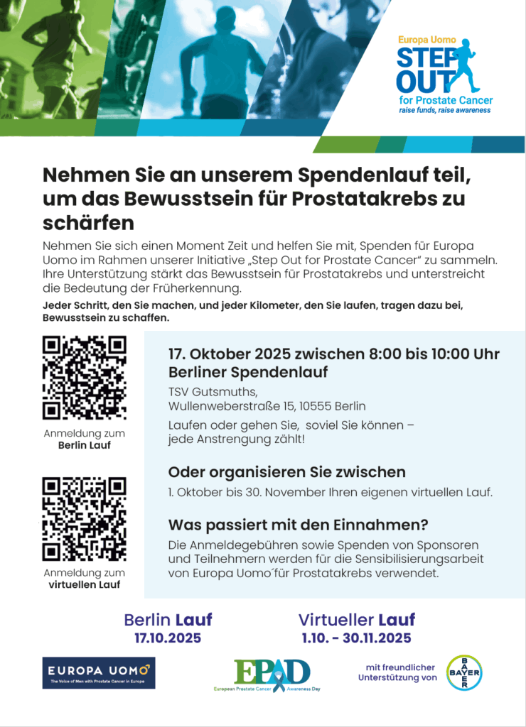 Nehmen Sie an unserem Spendenlauf teil, um das Bewusstsein für Prostatakrebs zu schärfen.